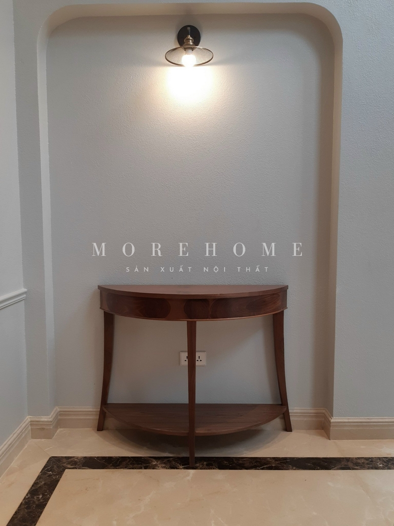Thi công kệ, bàn console decor gỗ óc chó trang trí thẩm mỹ cho không gian