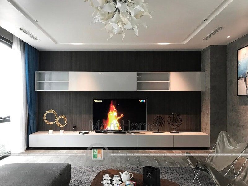 Kệ tivi MDF công nghiệp kết hợp laminate hiện đại với thiết kế gọn nhẹ phù hợp với các phòng khách có diện tích lớn hoặc nhỏ.