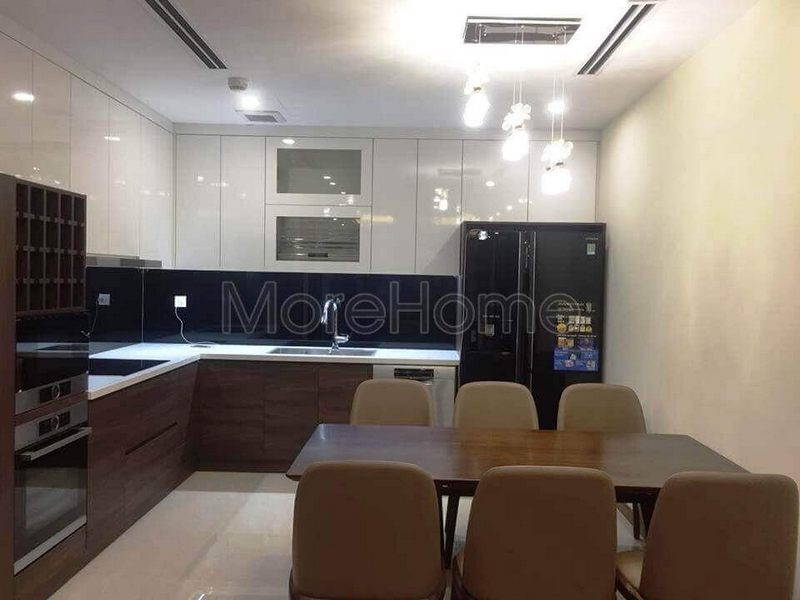 Việc thi công nội thất phòng bếp cho chung cư hiện đại tại Imperia Garden đang được thực hiện.